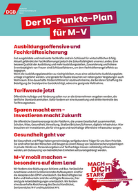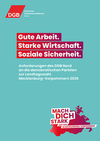 Mecklenburg-Vorpommern wählt. Und wir bringen uns ein mit unseren Ideen für eine gute Zukunft in diesem Land. Denn wir sind überzeugt: Politik kann etwas für die Menschen bewirken: Für bessere Arbeitsbedingungen sorgen, gute Löhne, günstigere Wohnungen, eine ordentliche Gesundheitsversorgung, einen funktionierenden Nahverkehr und öffentlichen Dienst. Das sind unsere Ideen dazu.