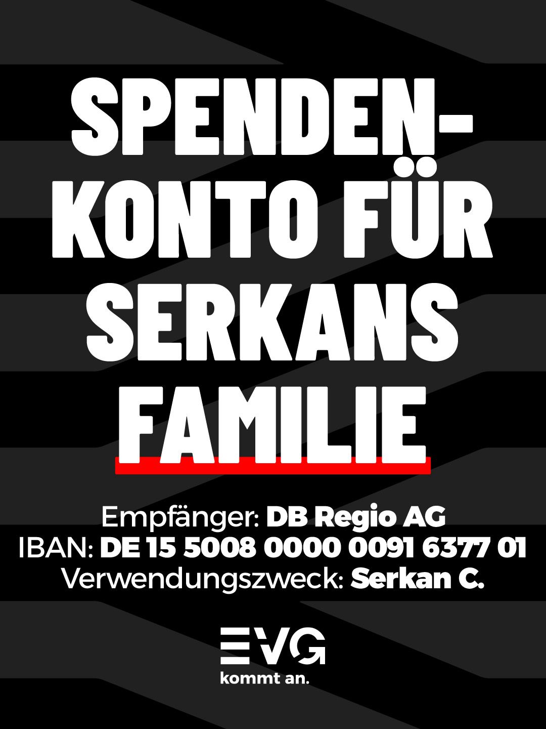 Während wir um unseren Kollegen Serkan trauern, halten wir mit der Eisenbahnerfamilie fest zusammen. Serkan war alleinerziehender Vater von zwei Kindern und seine Familie braucht jetzt finanzielle Unterstützung. Wir rufen euch deshalb alle auf – Eisenbahner, Beschäftigte und Gewerkschafter aller Berufe – jeder Euro, den ihr für die Unterstützung von Serkans Familie entbehren könnt, hilft.